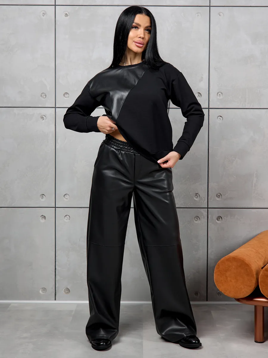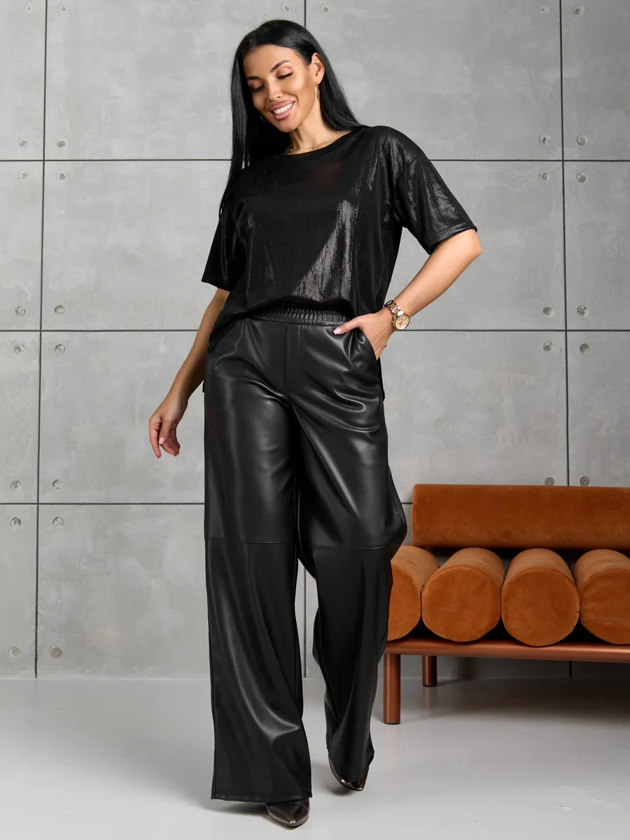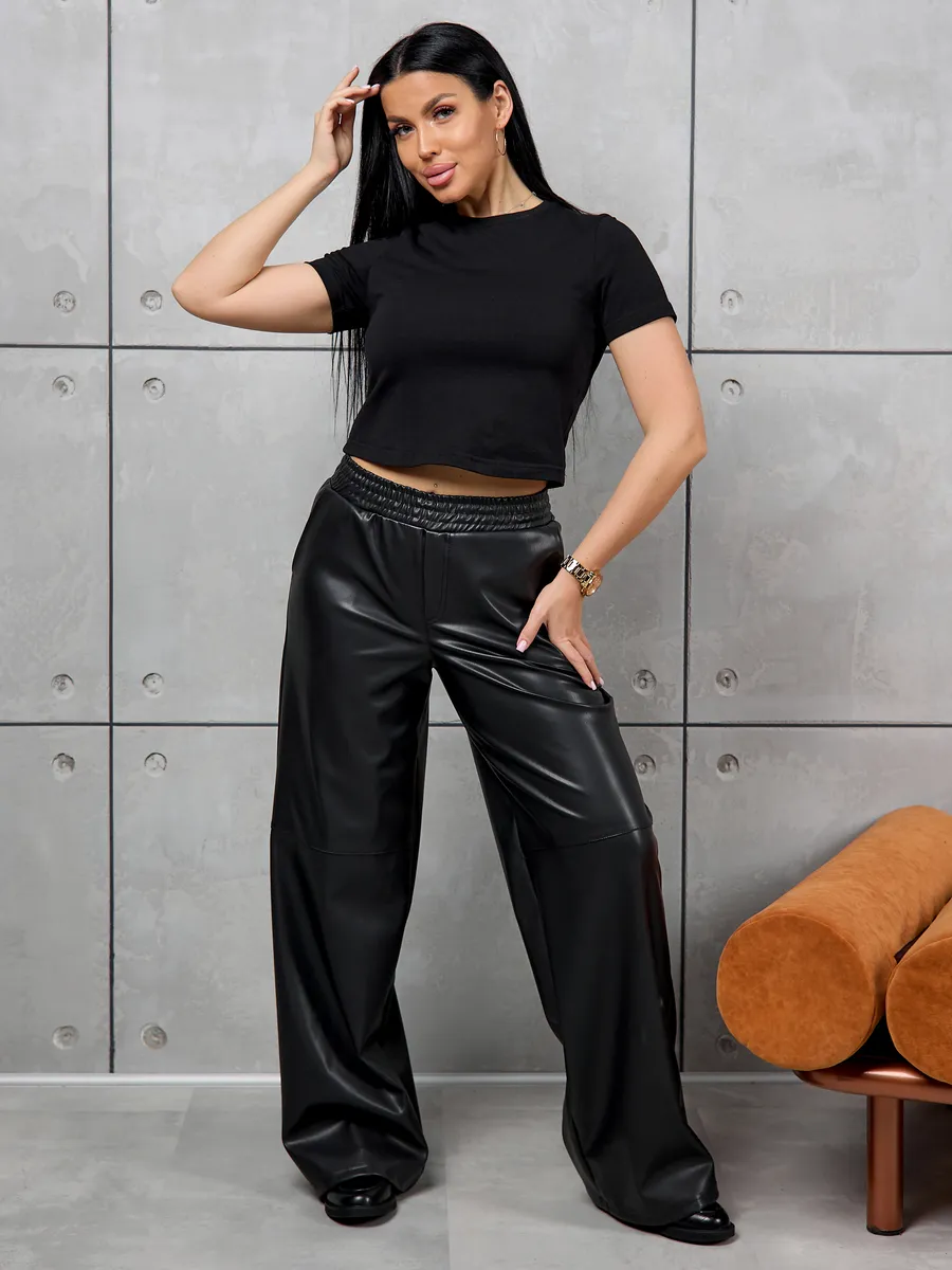 Брюки представлены в различных размерах, включая варианты для больших размеров, позволяя подобрать идеальную посадку. Брюки на резинке обеспечивают дополнительный комфорт и свободу движений без чувства стеснения. Эко кожа отличается долговечностью и простотой ухода, что делает изделие практичным для ежедневной носки.