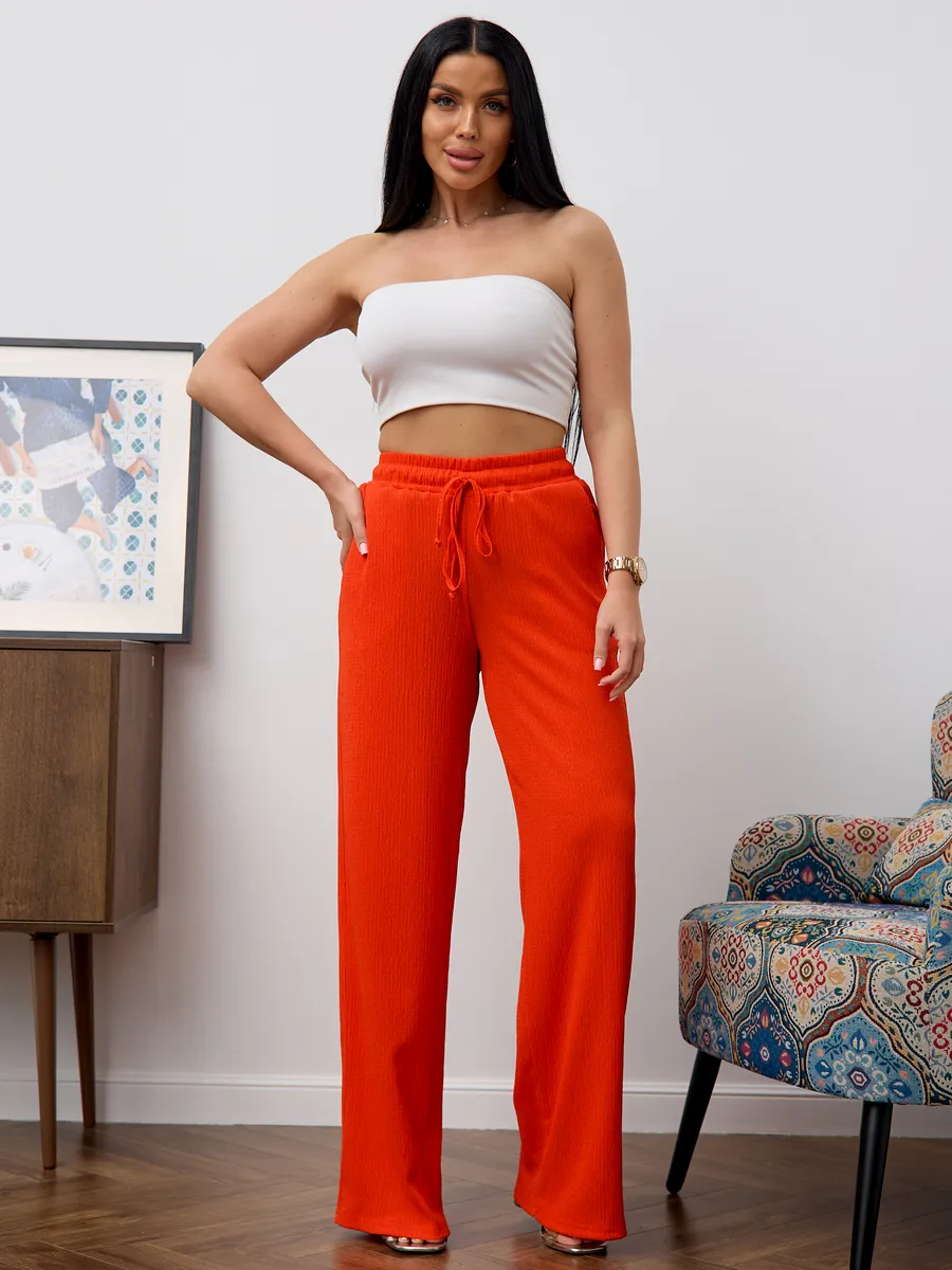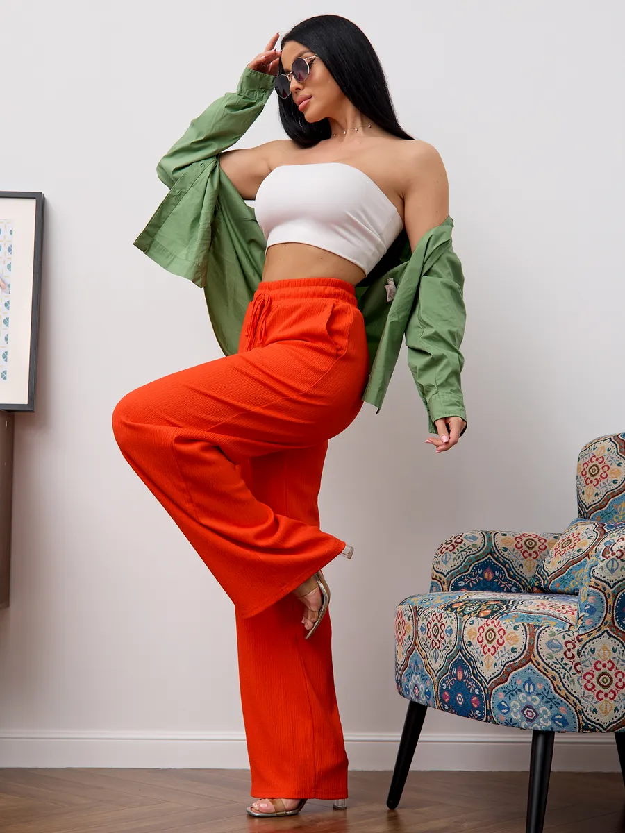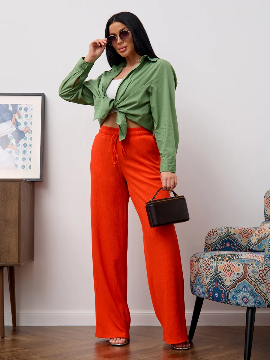 Брюки женские свободные с высокой посадкой , что обеспечивает комфорт и воздухопроницаемость в теплое время года. Модель представлена в классическом стиле- широкие палаццо на резинке с завязками, который подходит для офиса. Легкие брюки с резинкой на талии создают удобную посадку и позволяют свободно двигаться. Модель представлена в размерах для больших и стандартных фигур, что делает их универсальными и практичными для разных типажей. Эти брюки идеально подходят для весны и лета, сочетая стиль и комфорт в одном изделии. Широкие брюки создают современный образ, подходящий как для повседневной носки, так и для офисных будней. Материал отличается легкостью, что делает изделие приятным к телу и долговечным.