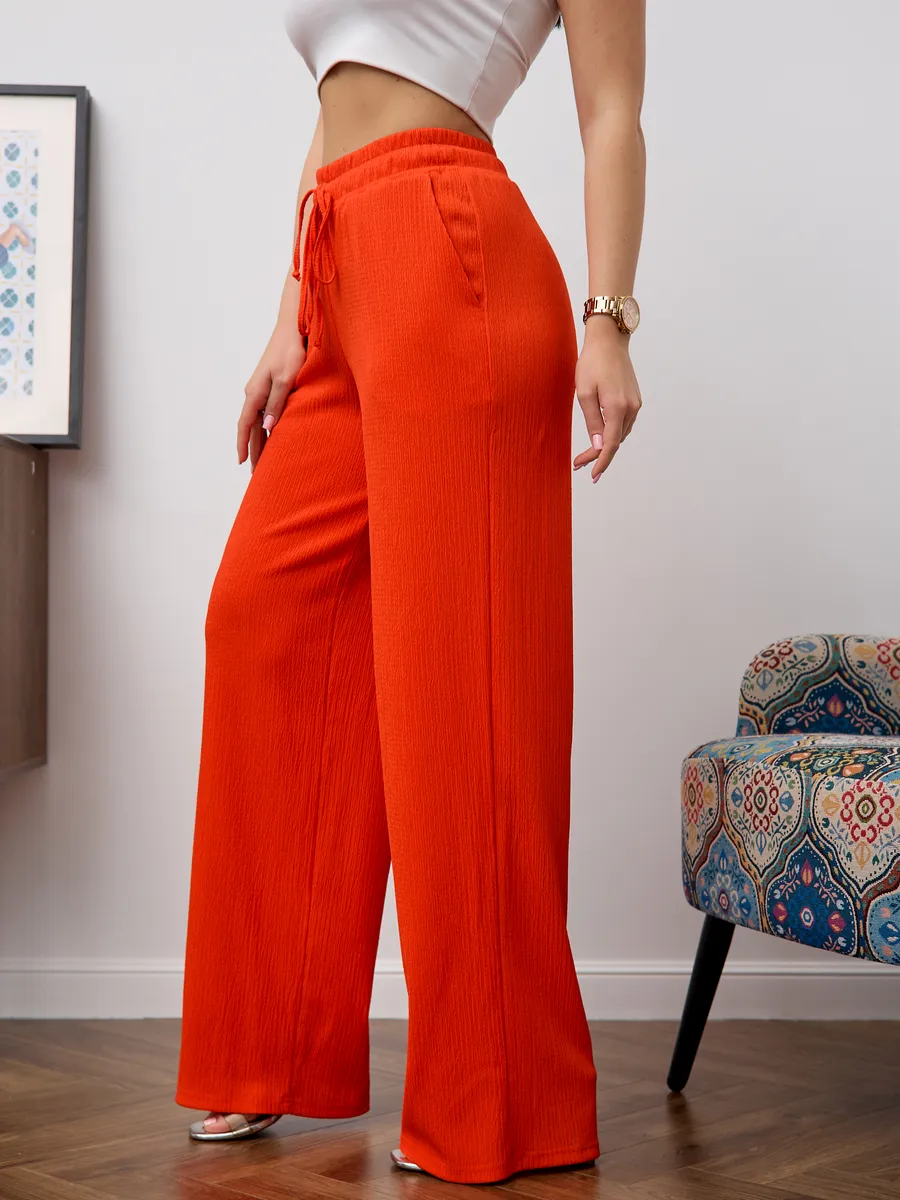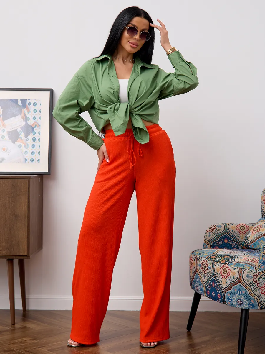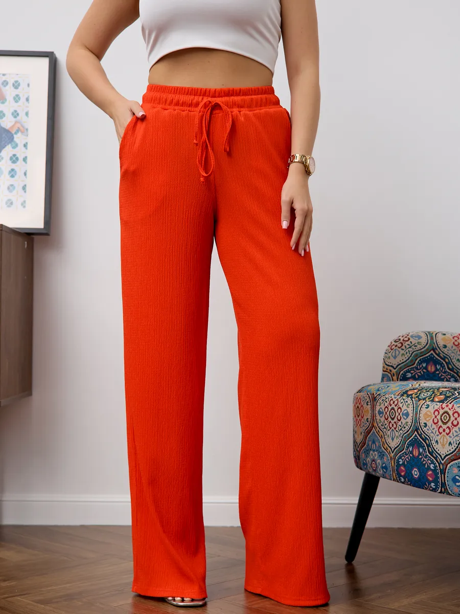 Брюки женские свободные с высокой посадкой , что обеспечивает комфорт и воздухопроницаемость в теплое время года. Модель представлена в классическом стиле- широкие палаццо на резинке с завязками, который подходит для офиса. Легкие брюки с резинкой на талии создают удобную посадку и позволяют свободно двигаться. Модель представлена в размерах для больших и стандартных фигур, что делает их универсальными и практичными для разных типажей. Эти брюки идеально подходят для весны и лета, сочетая стиль и комфорт в одном изделии. Широкие брюки создают современный образ, подходящий как для повседневной носки, так и для офисных будней. Материал отличается легкостью, что делает изделие приятным к телу и долговечным.