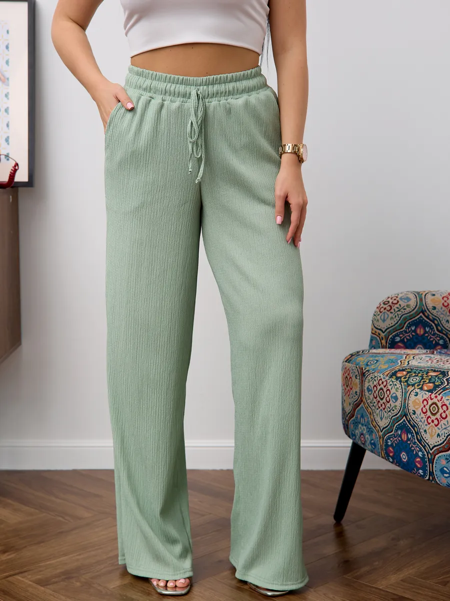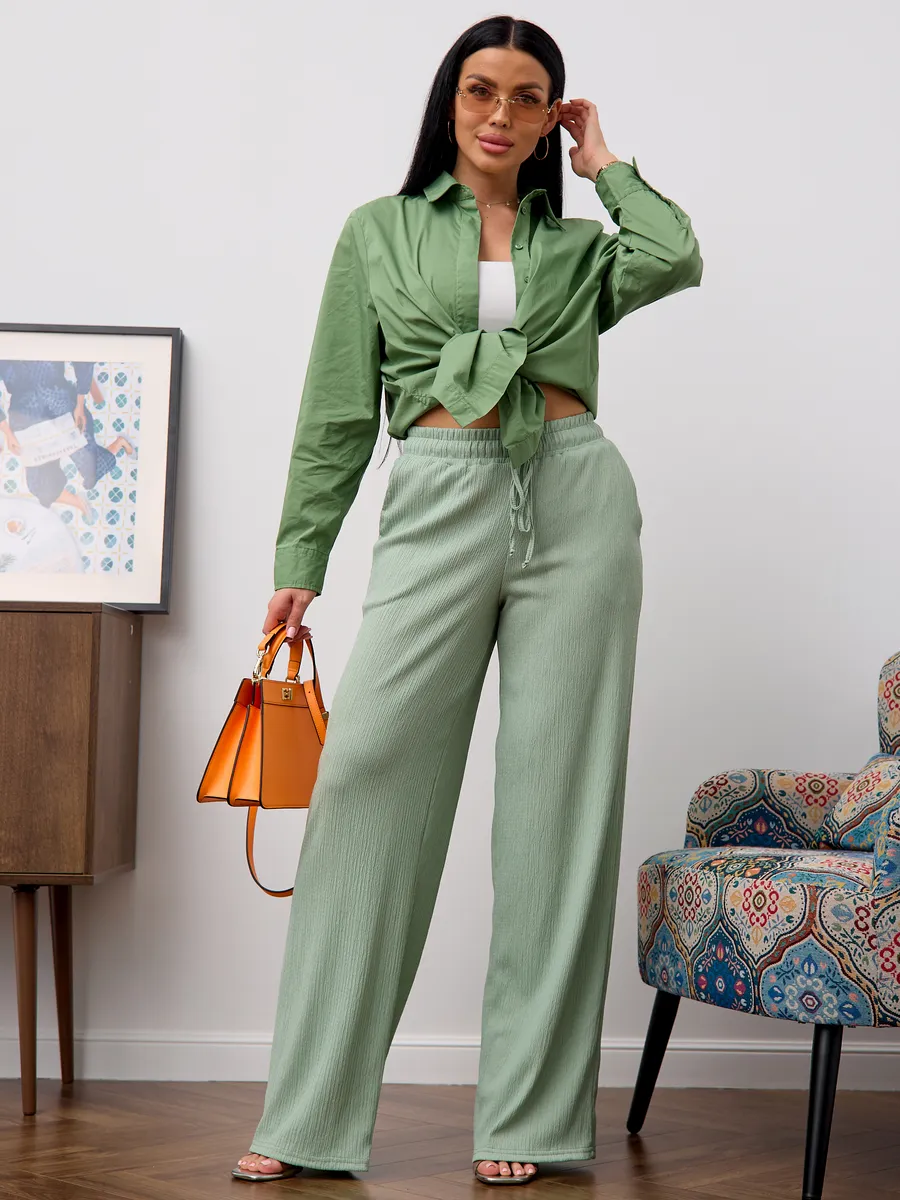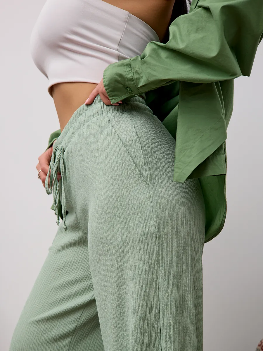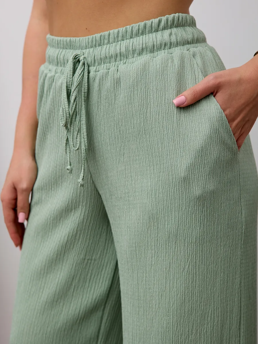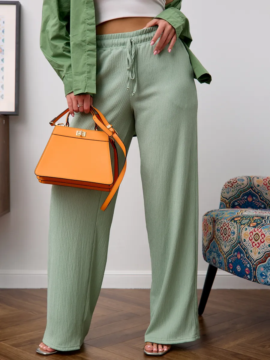 Брюки женские свободные с высокой посадкой , что обеспечивает комфорт и воздухопроницаемость в теплое время года. Модель представлена в классическом стиле- широкие палаццо на резинке с завязками, который подходит для офиса. Легкие брюки с резинкой на талии создают удобную посадку и позволяют свободно двигаться. Модель представлена в размерах для больших и стандартных фигур, что делает их универсальными и практичными для разных типажей. Эти брюки идеально подходят для весны и лета, сочетая стиль и комфорт в одном изделии. Широкие брюки создают современный образ, подходящий как для повседневной носки, так и для офисных будней. Материал отличается легкостью, что делает изделие приятным к телу и долговечным.