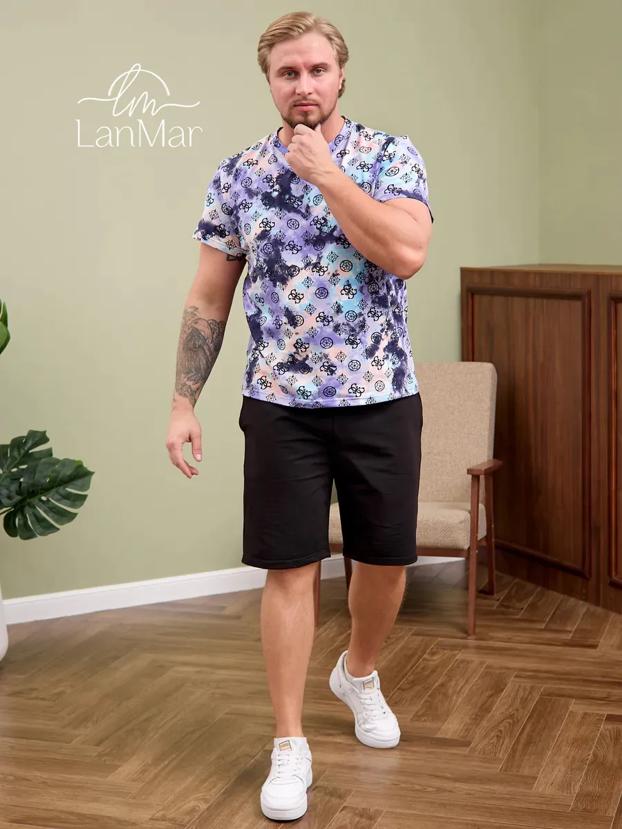 домашний мужской костюм с шортами и футболкой 1 шт.