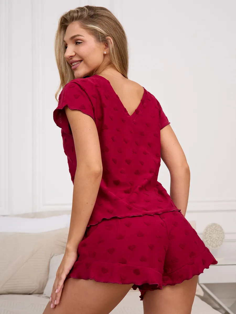 Женская пижама с шортами и футболкой — это удобная одежда для дома, созданная для женщин и подростков. Такой домашний костюм отлично подойдет тем, кто ценит комфорт и свободу движений во время отдыха и сна. Легкие шорты с воланом позволяют чувствовать себя уютно, а мягкая футболка обеспечивает приятные ощущения на коже. Данная женская модель представлена в больших размерах, что делает ее подходящей для беременных женщин и тех, кто предпочитает просторную посадку. Универсальный стиль позволяет использовать комплект как повседневную одежду дома или для сна.