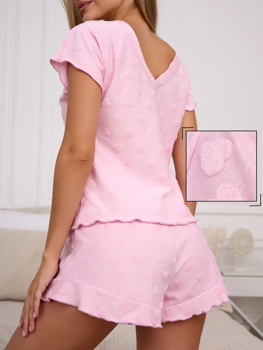 Женская пижама с шортами и футболкой — это удобная одежда для дома, созданная для женщин и подростков. Такой домашний костюм отлично подойдет тем, кто ценит комфорт и свободу движений во время отдыха и сна. Легкие шорты с воланом позволяют чувствовать себя уютно, а мягкая футболка обеспечивает приятные ощущения на коже. Данная женская модель представлена в больших размерах, что делает ее подходящей для беременных женщин и тех, кто предпочитает просторную посадку. Универсальный стиль позволяет использовать комплект как повседневную одежду дома или для сна.