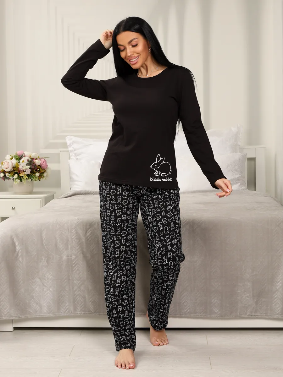 Женский костюм для дома отлично подойдет для комфортного отдыха. Теплая пижама из хлопка с длинным рукавом и брюками обеспечивает уют и мягкость при носке. Модель выполнена в черном цвете, что придает изделию универсальность и стиль. Благодаря большому размерному ряду каждый сможет подобрать оптимальный вариант. Домашний комплект отлично подойдет для уютных вечеров, создавая праздничное настроение вместе с парной фэмили лук) одеждой. представленная пижама сочетает практичность и удобство, сохраняя тепло и позволяя коже дышать. Этот костюм из натурального хлопка идеально подходит для тех, кто ценит комфорт и простоту в сочетании с современной повседневной элегантностью. Общий стиль и качество делают этот набор незаменимым элементом гардероба для отдыха на дому.