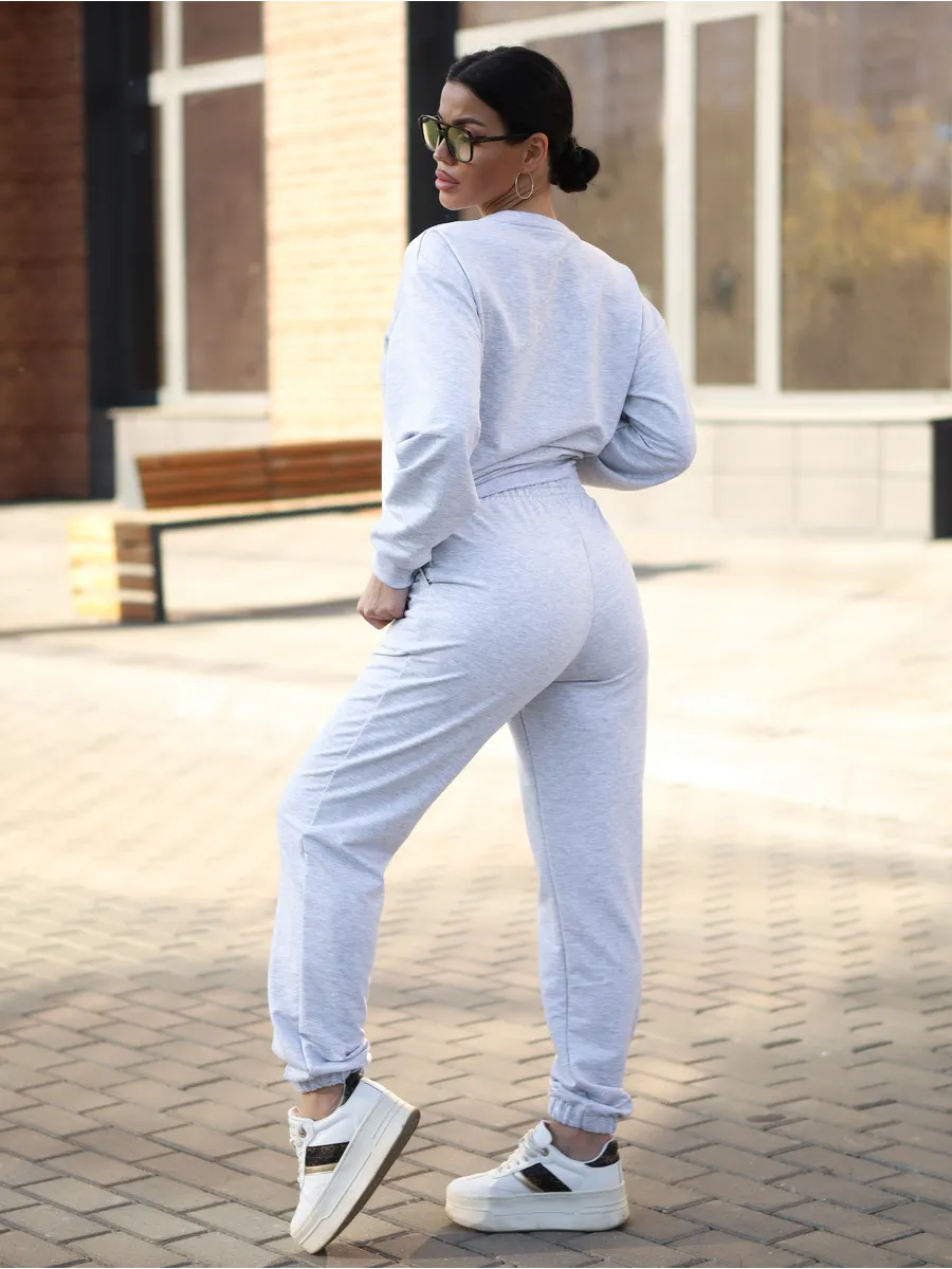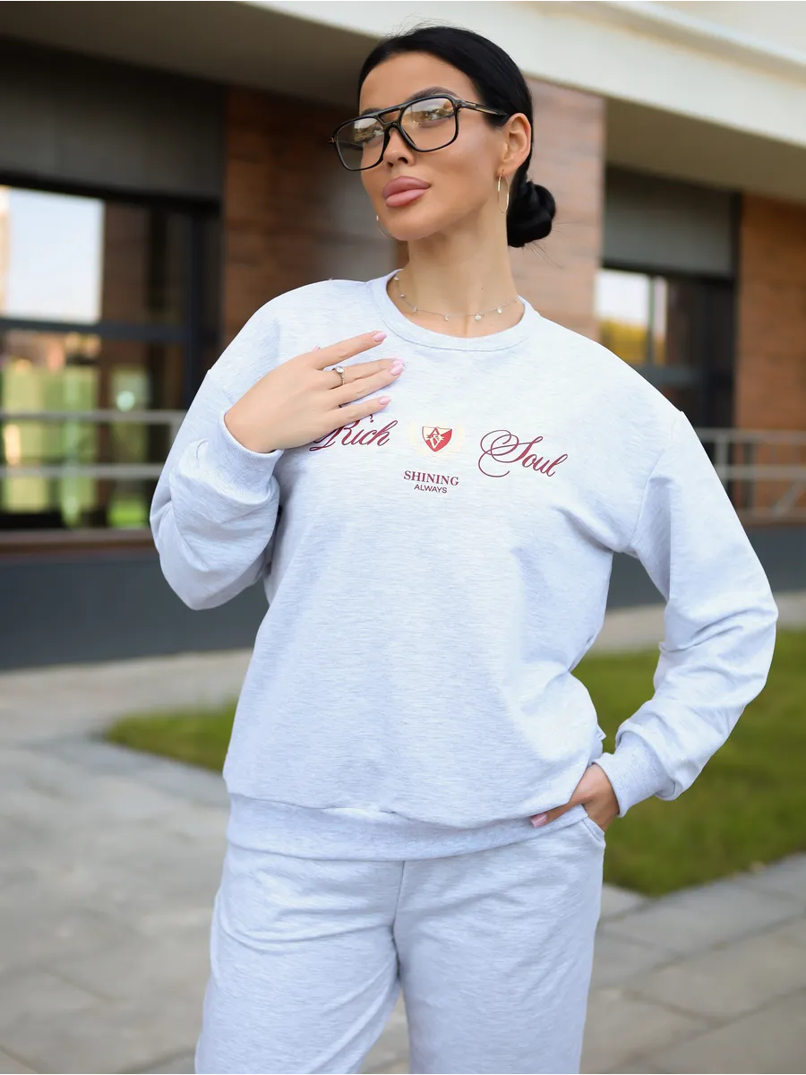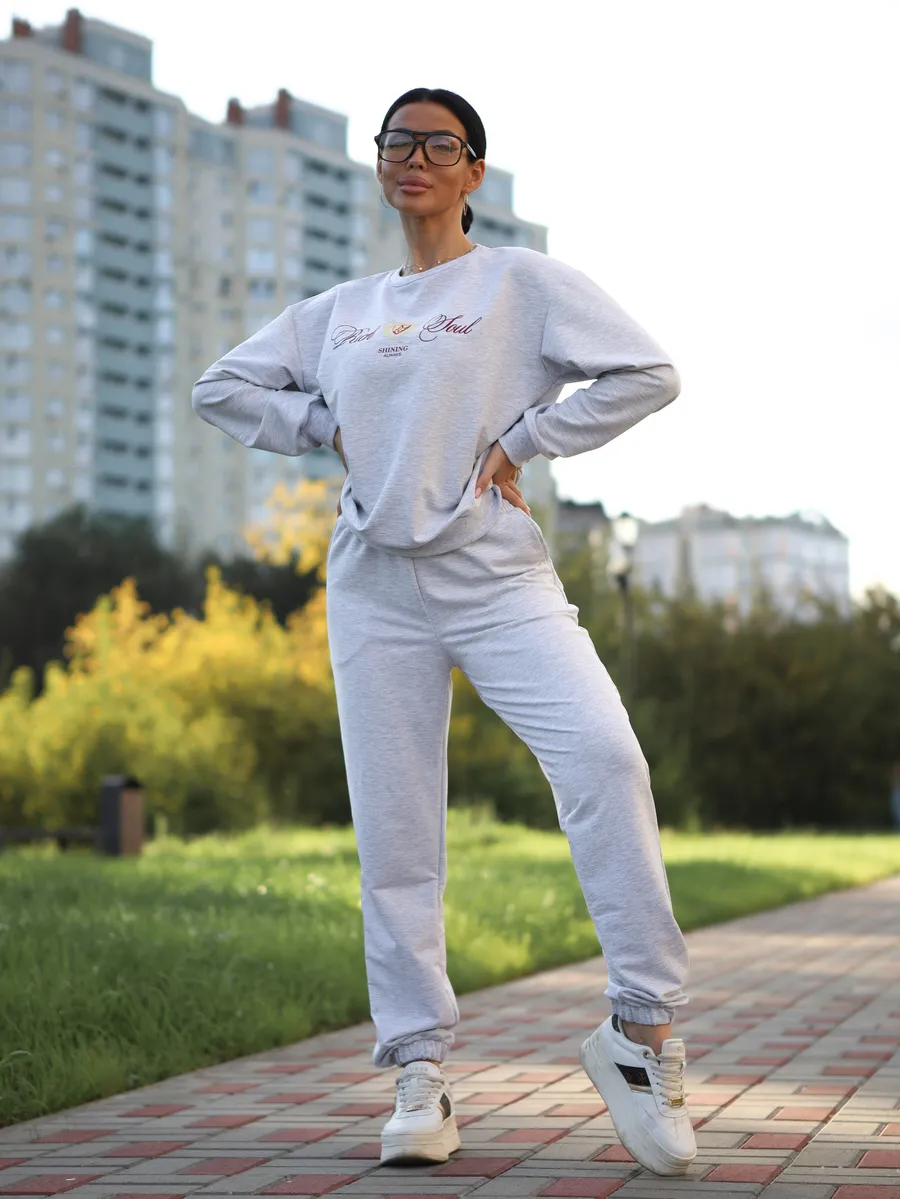Спортивный костюм женский без начеса из мягкого материала футер двунитка станет идеальным выбором дляпрохладного сезона. Комплект двойка, включает удобные джоггеры на резинке и верх без капюшона, со спущенной линией плеча. Подойдет для осенних прогулок или занятий спортом. Хлопковая ткань обеспечивает комфорт, а стильный оверсайз фасон подходит как для подростков, так и для женщин больших размеров. Этот универсальный спортивный комплект можно носить во время беременности благодаря его свободному крою.