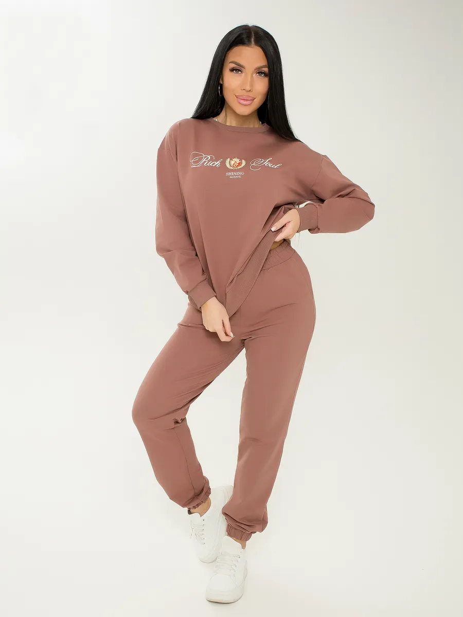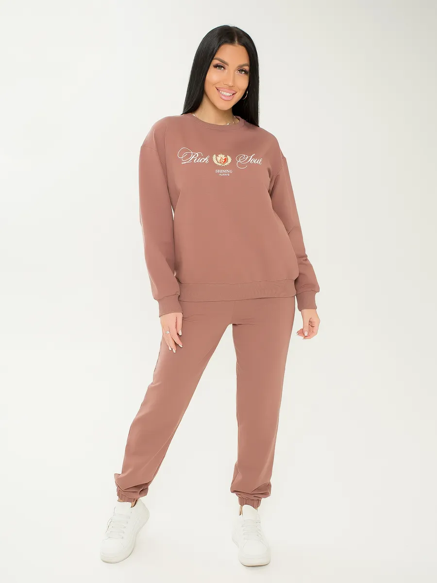 Спортивный костюм женский без начеса из мягкого материала футер двунитка станет идеальным выбором дляпрохладного сезона. Комплект двойка, включает удобные джоггеры на резинке и верх без капюшона, со спущенной линией плеча. Подойдет для осенних прогулок или занятий спортом. Хлопковая ткань обеспечивает комфорт, а стильный оверсайз фасон подходит как для подростков, так и для женщин больших размеров. Этот универсальный спортивный комплект можно носить во время беременности благодаря его свободному крою.