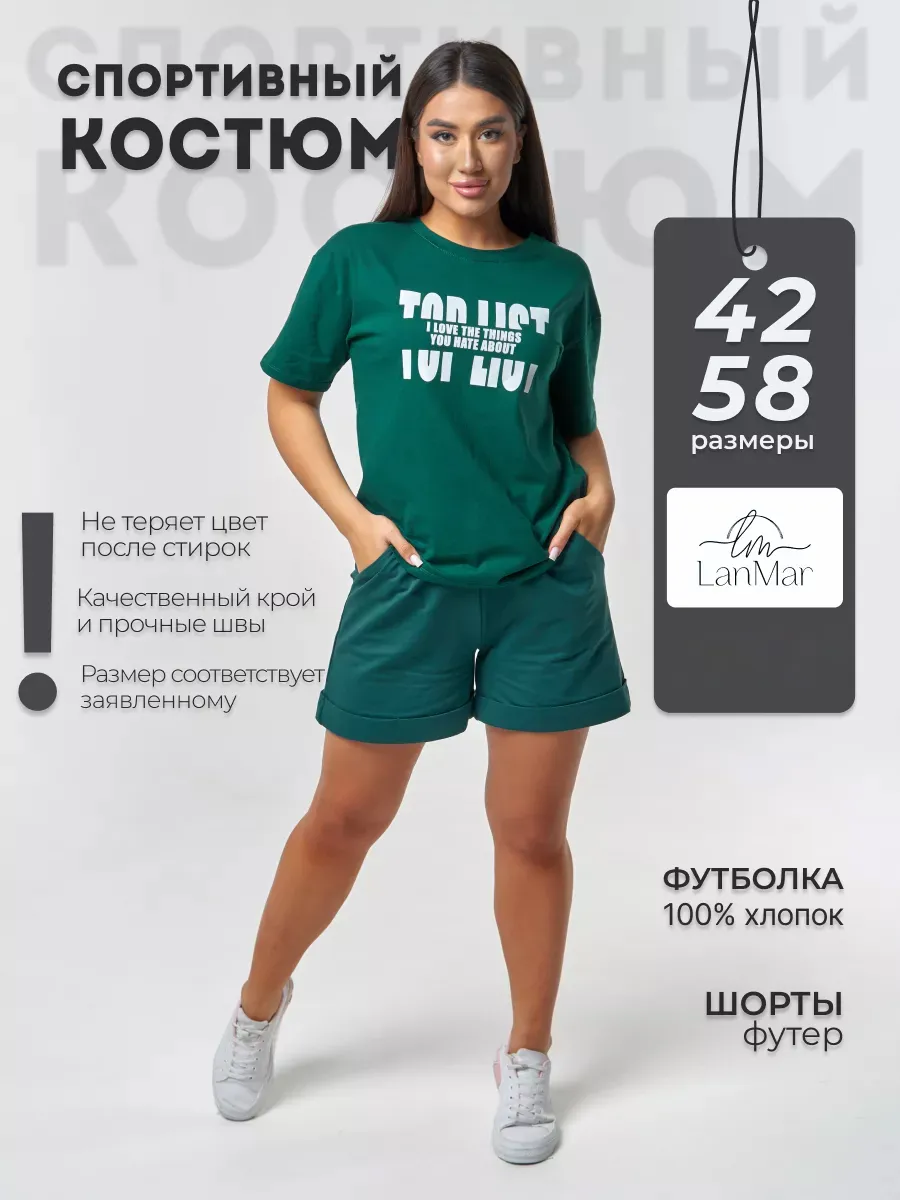Погрузись в мир спорта с нашим женским спортивным костюмом! Этот модный комплект с шортами и футболкой отлично подойдет для занятий фитнесом или бегом. Легкий и комфортный материал позволит чувствовать себя уверенно и стильно в любой ситуации. Наш спортивный костюм женский подойдет как для занятий в зале, так и для активного отдыха на свежем воздухе. Благодаря большому выбору размеров и расцветок, каждая женщина или девушка сможет найти подходящий вариант. В наличии есть большие размеры. В комплекте летняя футболка выполнена из 100% хлопка, а шорты с карманами состоят из: хлопок 70%, полиэстер 25%, лайкра 5%. Шорты на мягкой резинке со шнуровкой подходят для беременных. Трикотажный костюм оверсайз обеспечивает свободу движений и удобство, его можно использовать также в качестве домашней одежды или для прогулок. Использование высококачественных материалов гарантирует долговечность изделия. Не упусти возможность приобрести стильный и функциональный спортивный комплект и будь в центре внимания на тренировках!