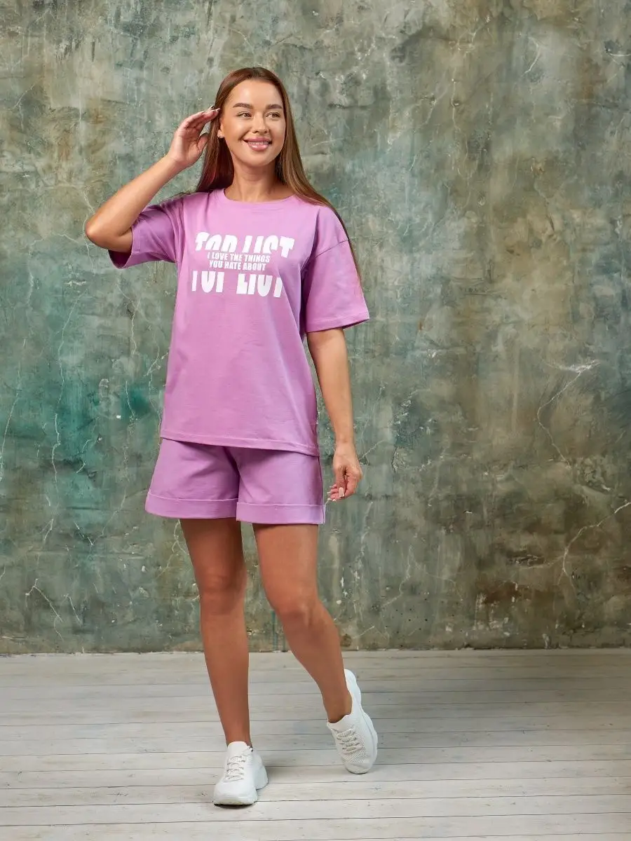 Погрузись в мир спорта с нашим женским спортивным костюмом! Этот модный комплект с шортами и футболкой отлично подойдет для занятий фитнесом или бегом. Легкий и комфортный материал позволит чувствовать себя уверенно и стильно в любой ситуации. Наш спортивный костюм женский подойдет как для занятий в зале, так и для активного отдыха на свежем воздухе. Благодаря большому выбору размеров и расцветок, каждая женщина или девушка сможет найти подходящий вариант. В наличии есть большие размеры. В комплекте летняя футболка выполнена из 100% хлопка, а шорты с карманами состоят из: хлопок 70%, полиэстер 25%, лайкра 5%. Шорты на мягкой резинке со шнуровкой подходят для беременных. Трикотажный костюм оверсайз обеспечивает свободу движений и удобство, его можно использовать также в качестве домашней одежды или для прогулок. Использование высококачественных материалов гарантирует долговечность изделия. Не упусти возможность приобрести стильный и функциональный спортивный комплект и будь в центре внимания на тренировках!