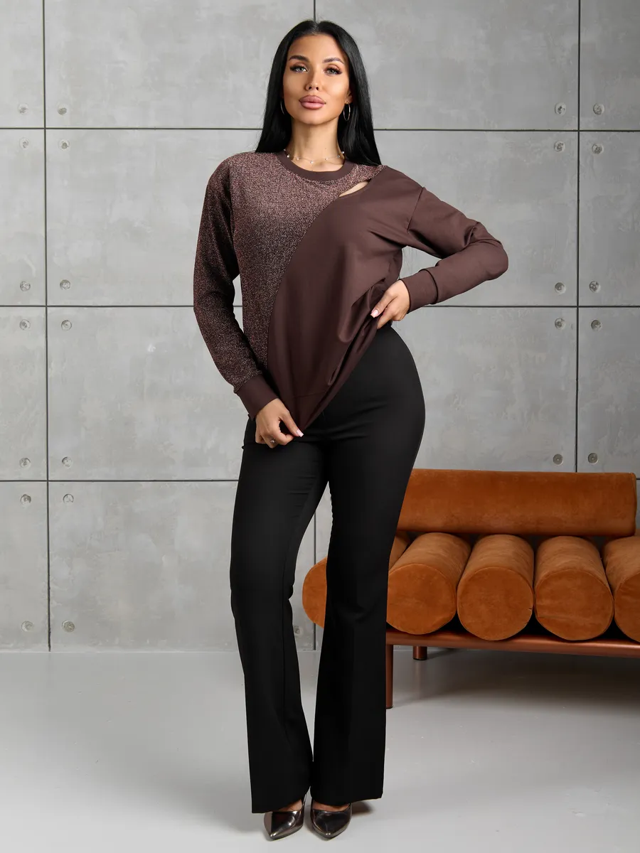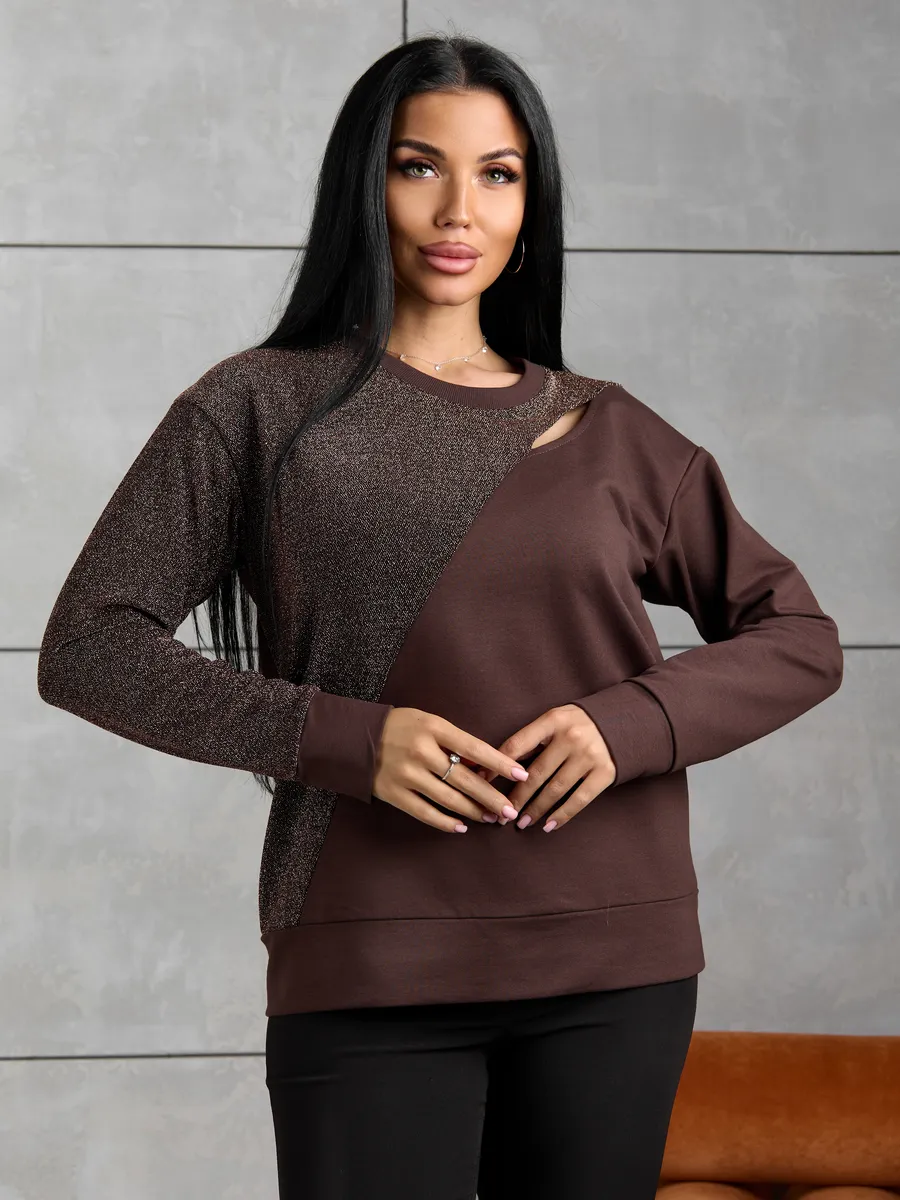 Свитшот женский с люрексом без капюшона - идеальное дополнение гардероба. Выполнен из футера 2х нитки, эта толстовка прекрасно подойдет для весны. Свитшот стильный и легко впишется как в школьный повседневный образ для девочек подростков, так и для офиса. Лаконичный дизайн делает этот предмет одежды универсальным решением для многих случаев.